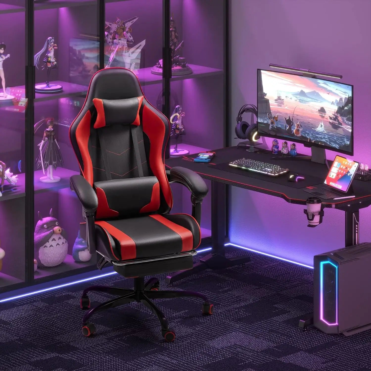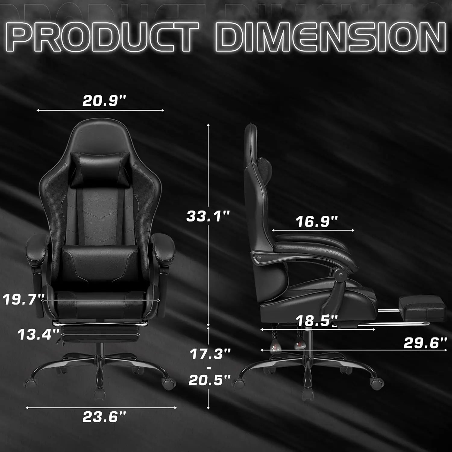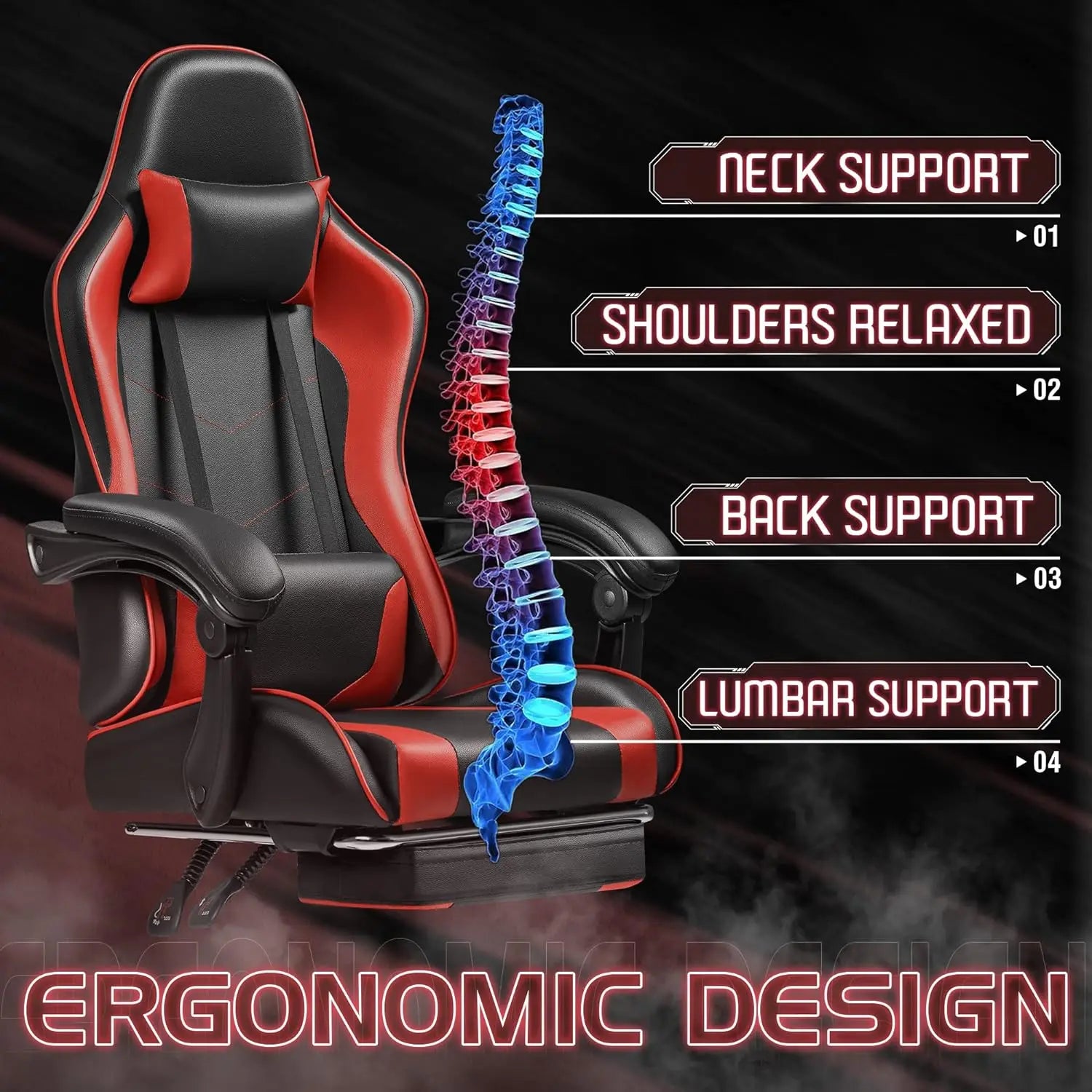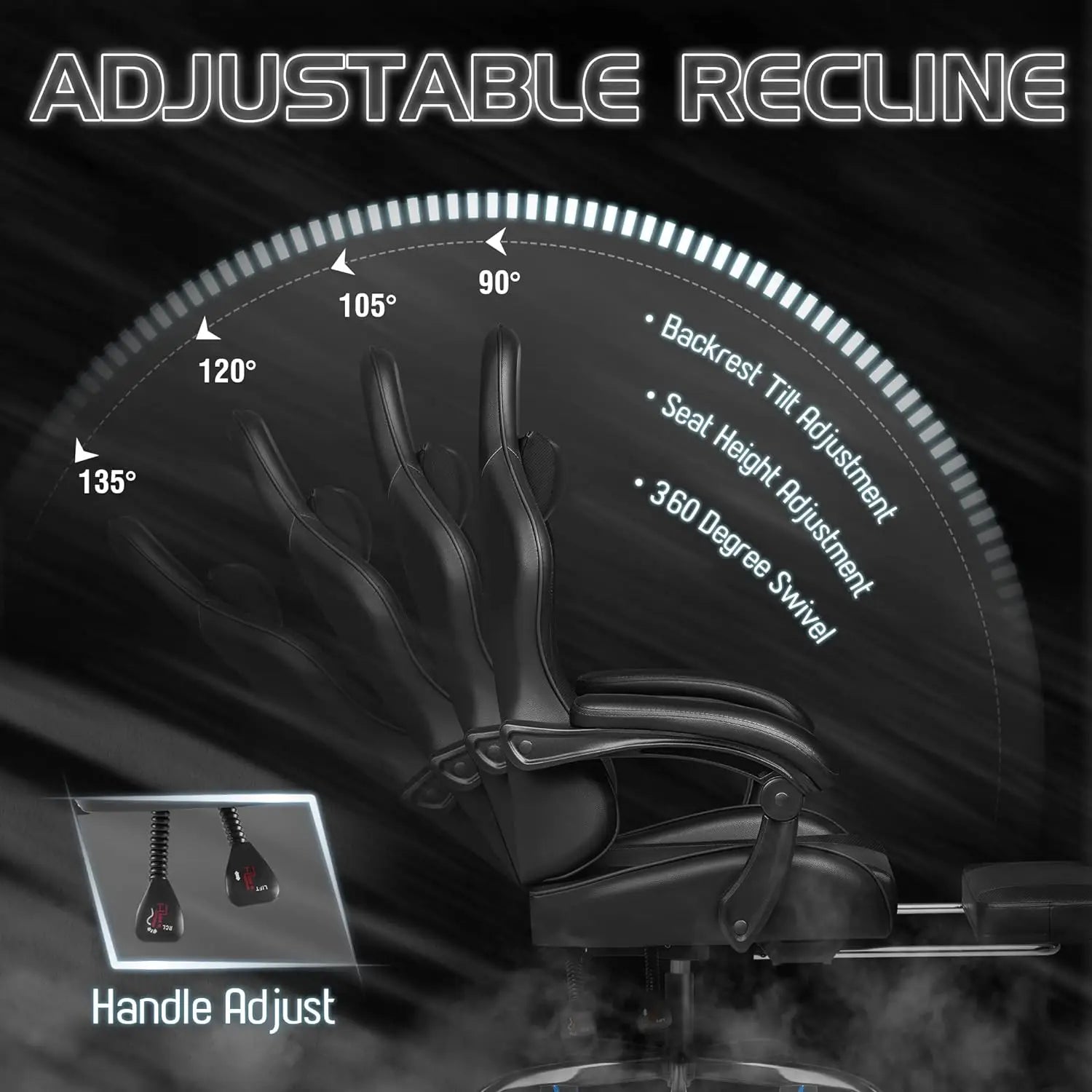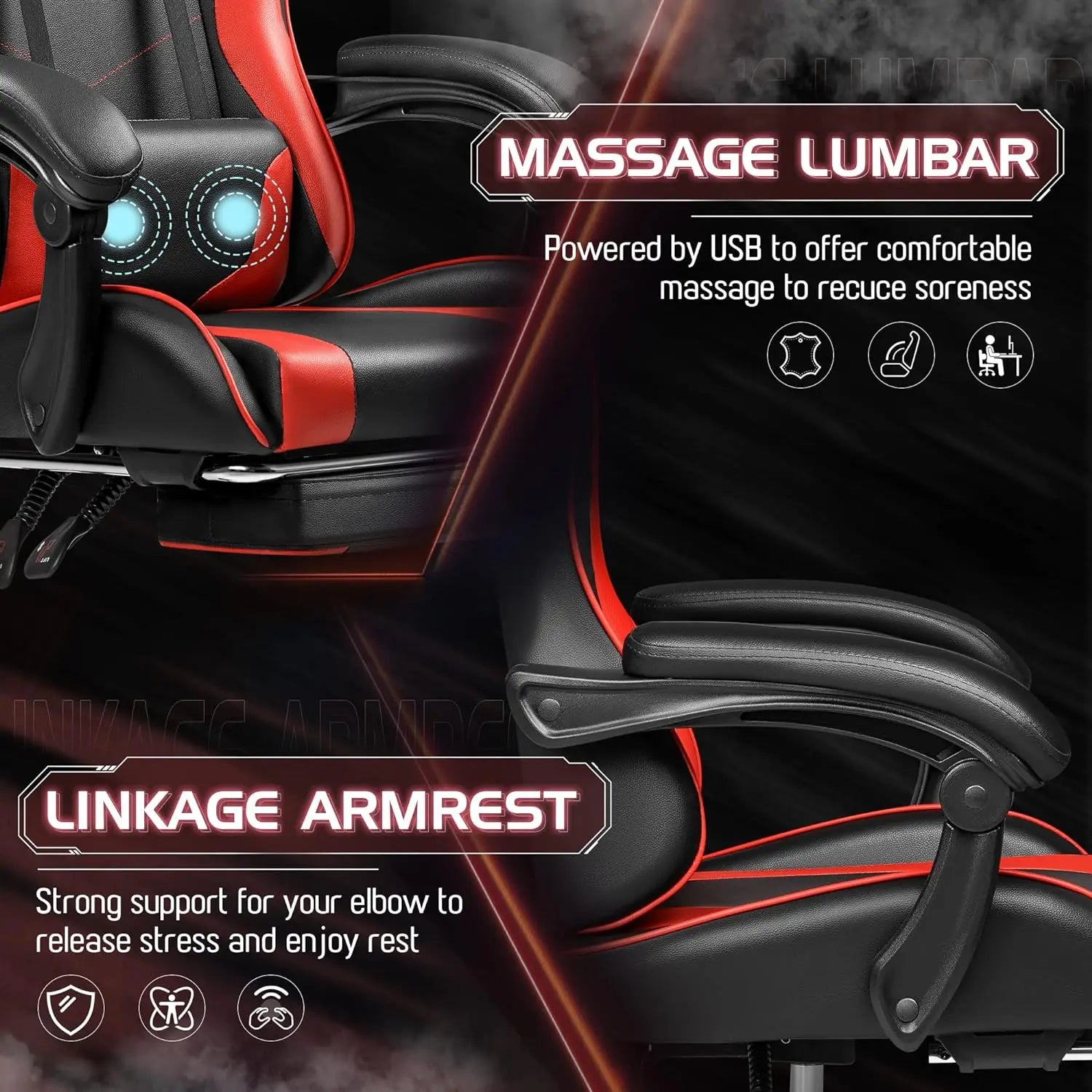 Gaming Chair, Video Game Chair with Footrest and Massage Lumbar Support,