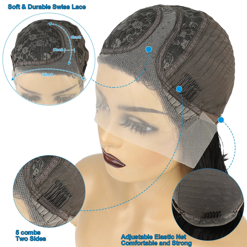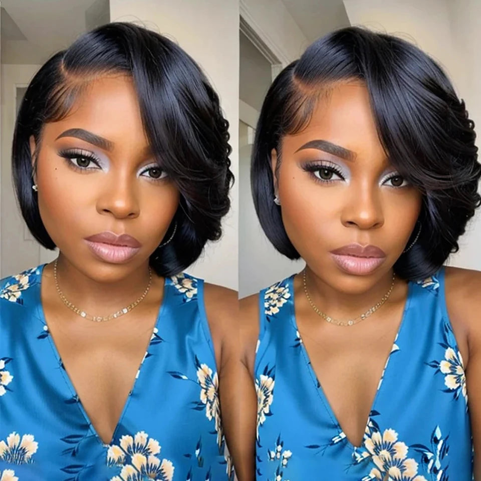Pre Plucked Brazilian Human Hair Wigs Side Part Bob Wig for Women Natural Color T Part Lace Remy Straight Human Hair Wigs