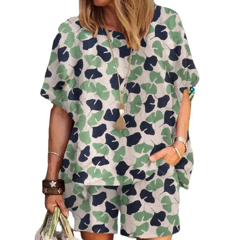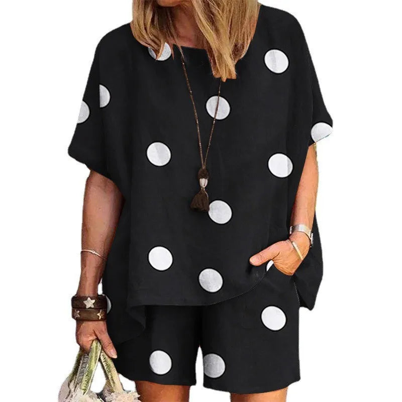 Summer Fashion New Women's Set Polka Dot Print Round Neck Loose Short Sleeve