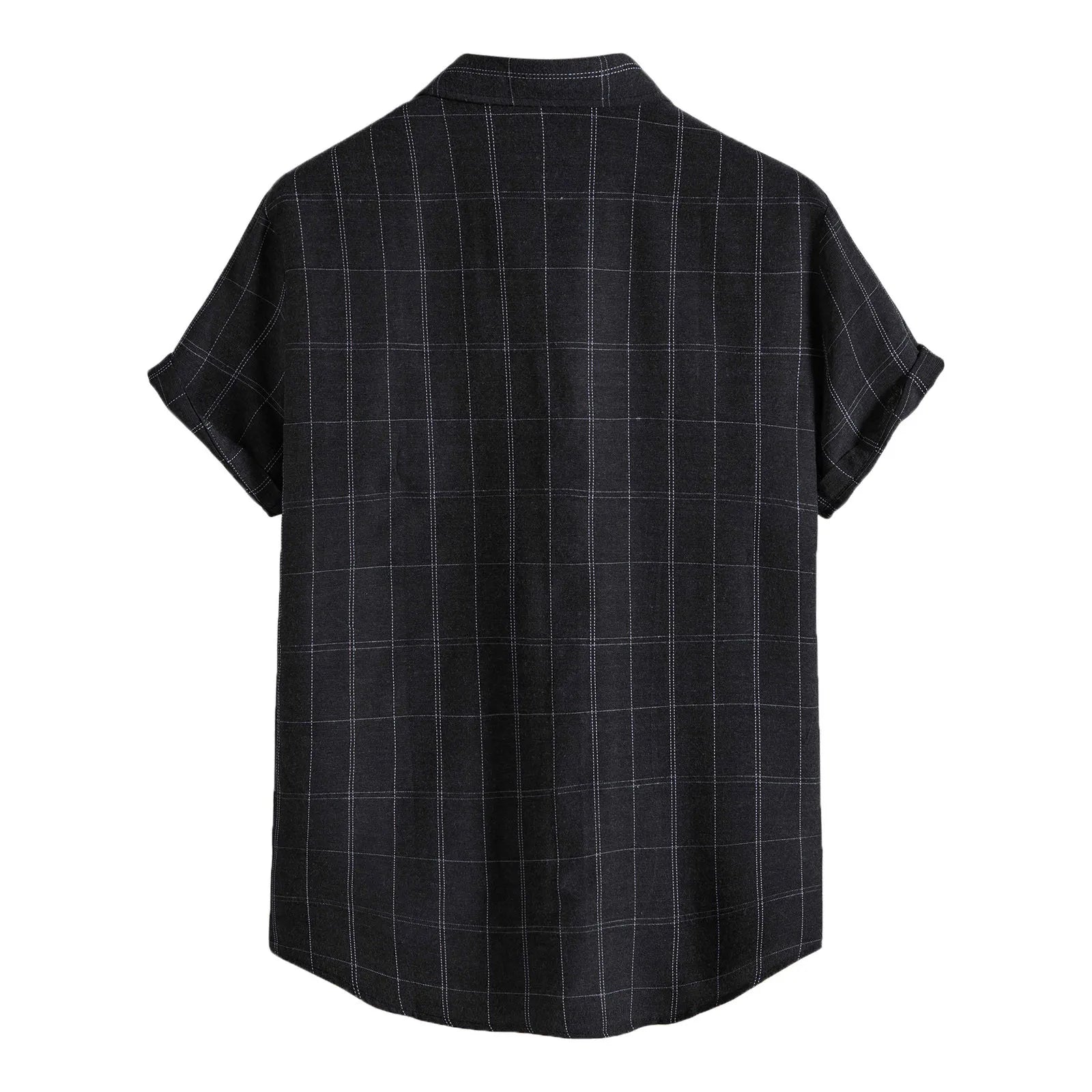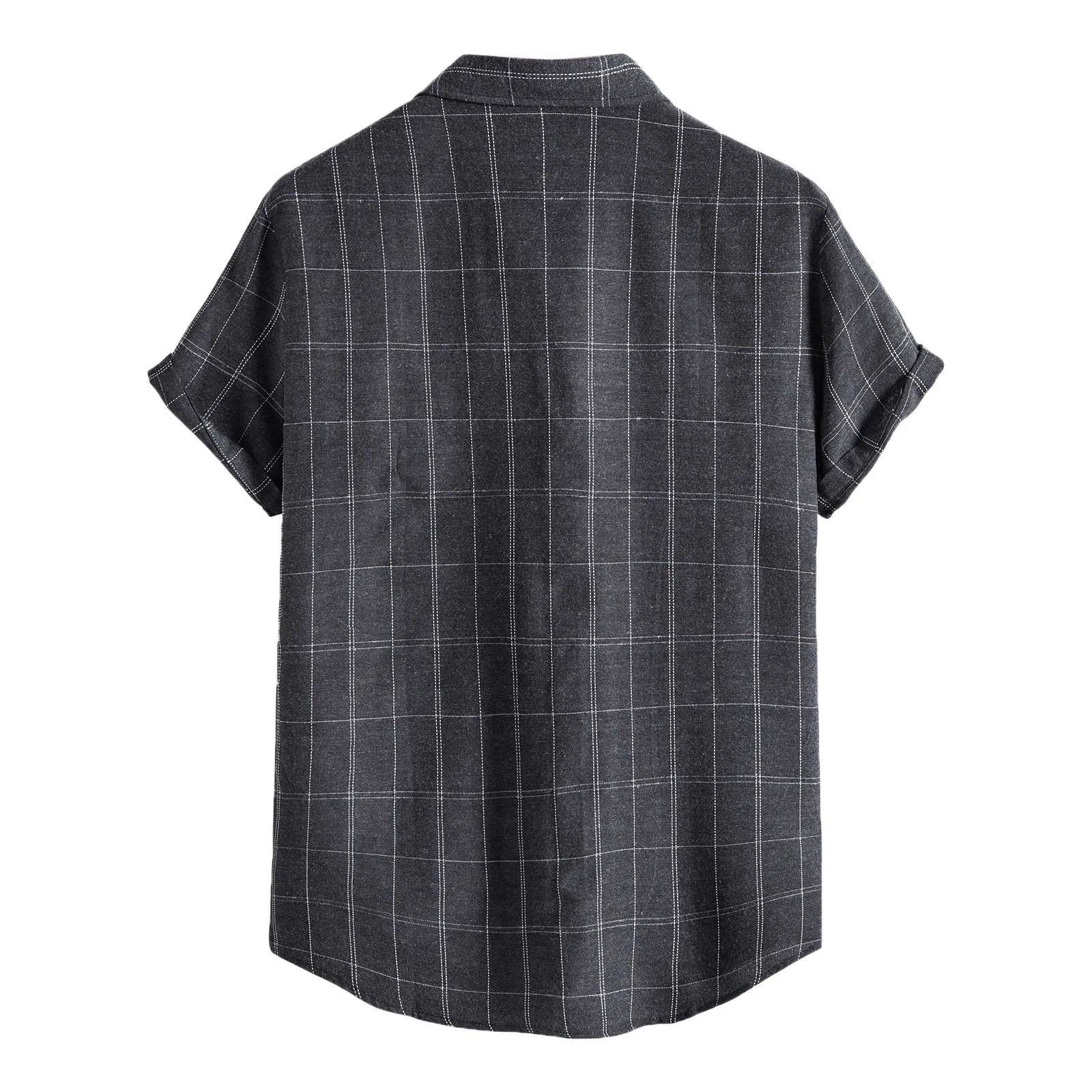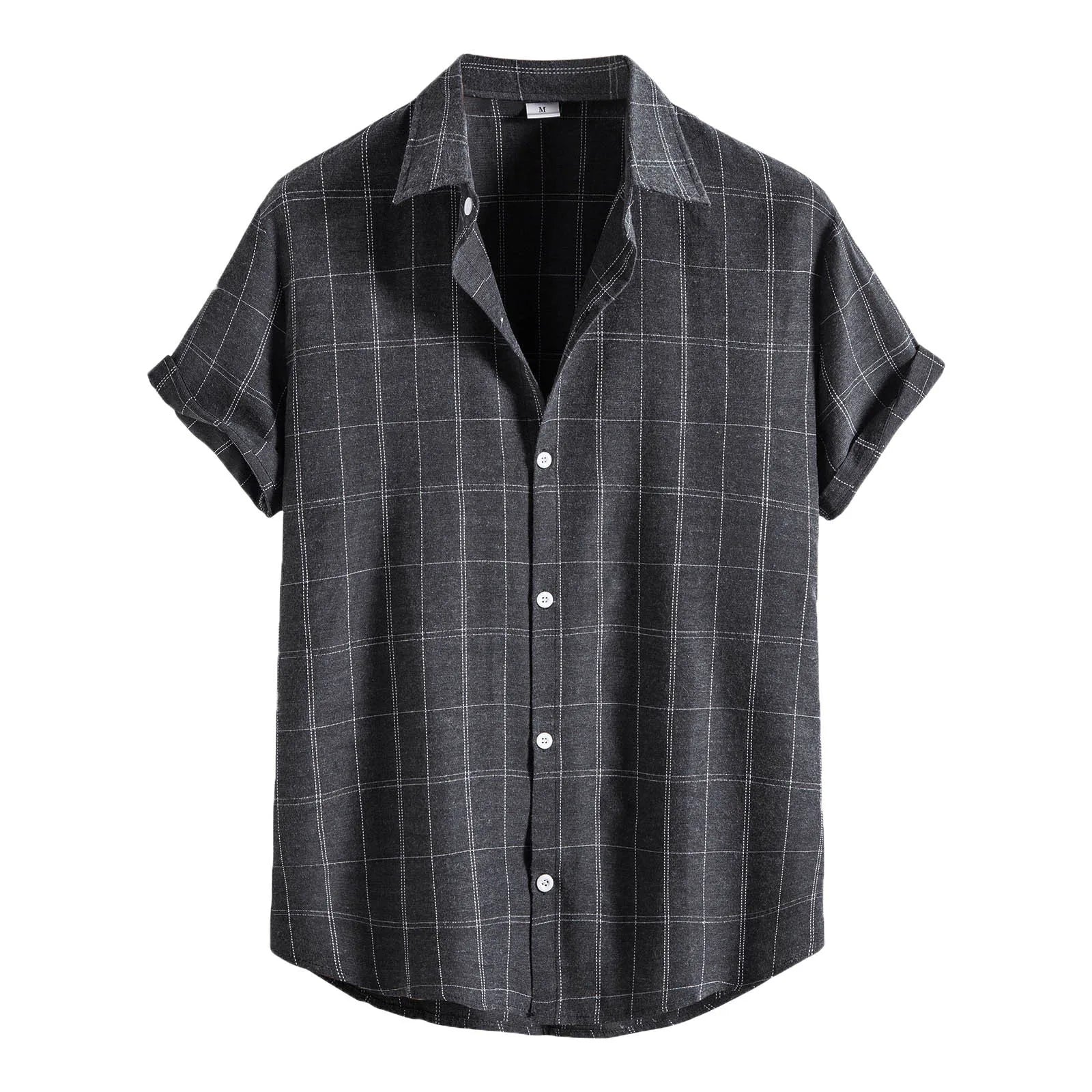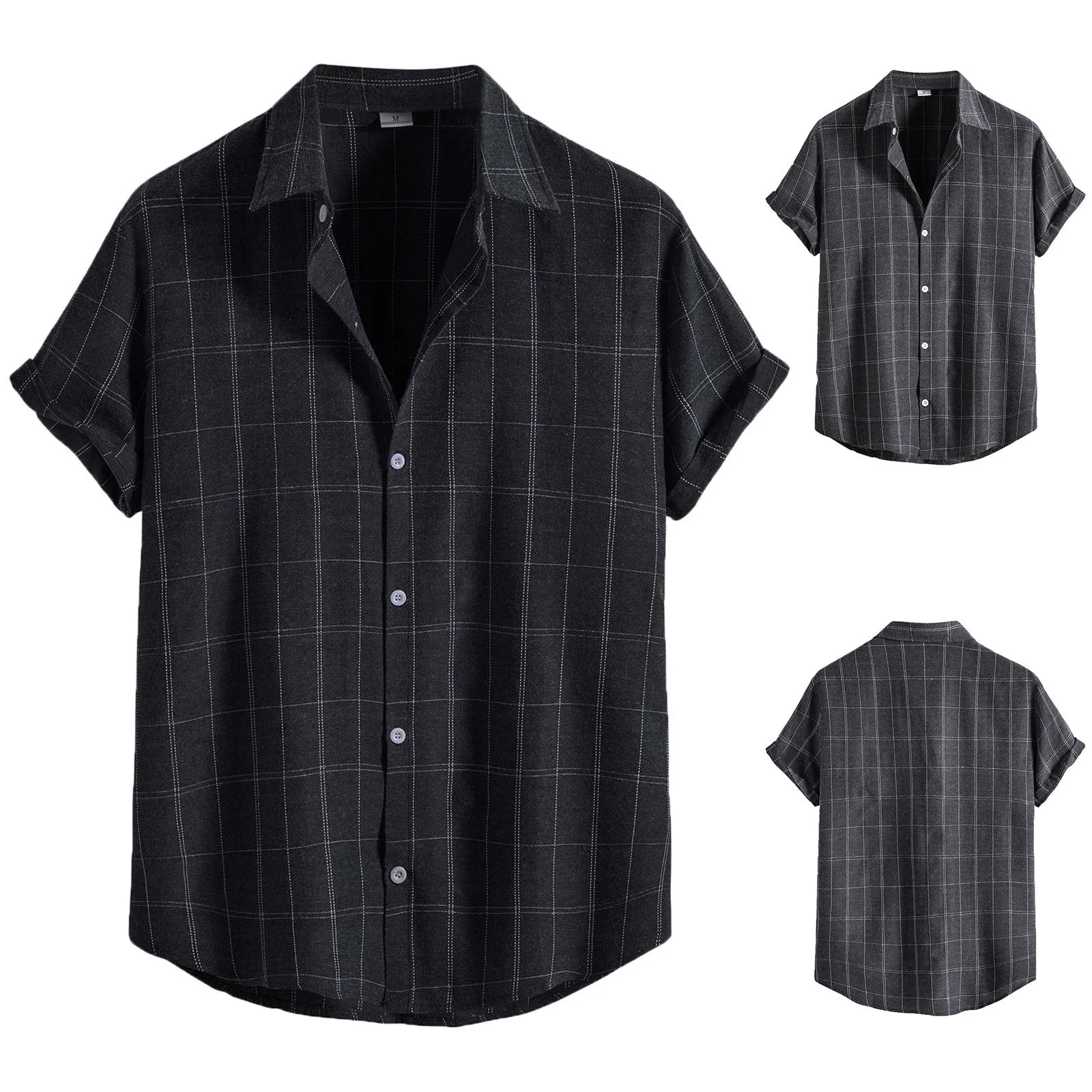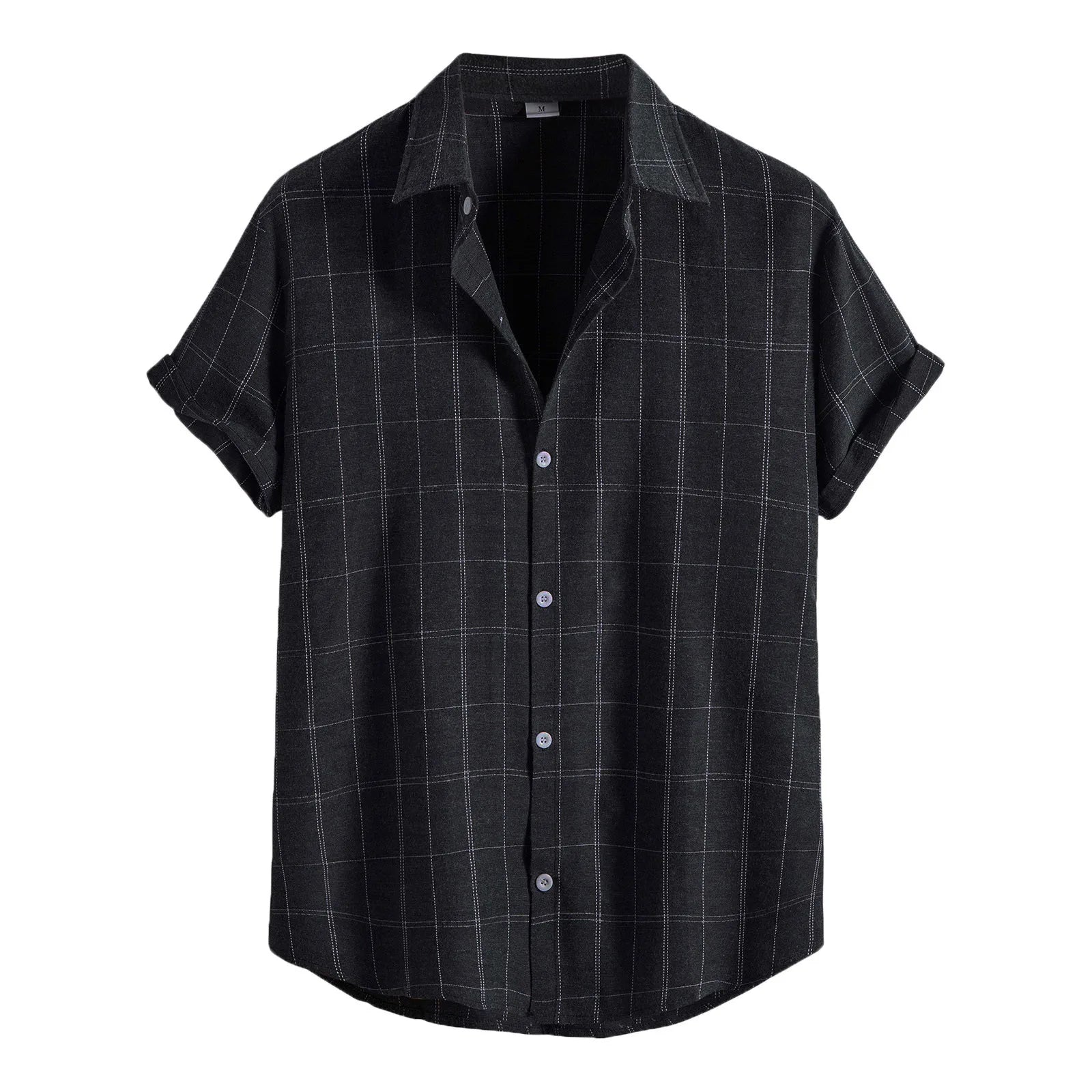 Summer Men Shirts Hawaiian Short Sleeve Work Shirt Men Plaid Print Blouse Men