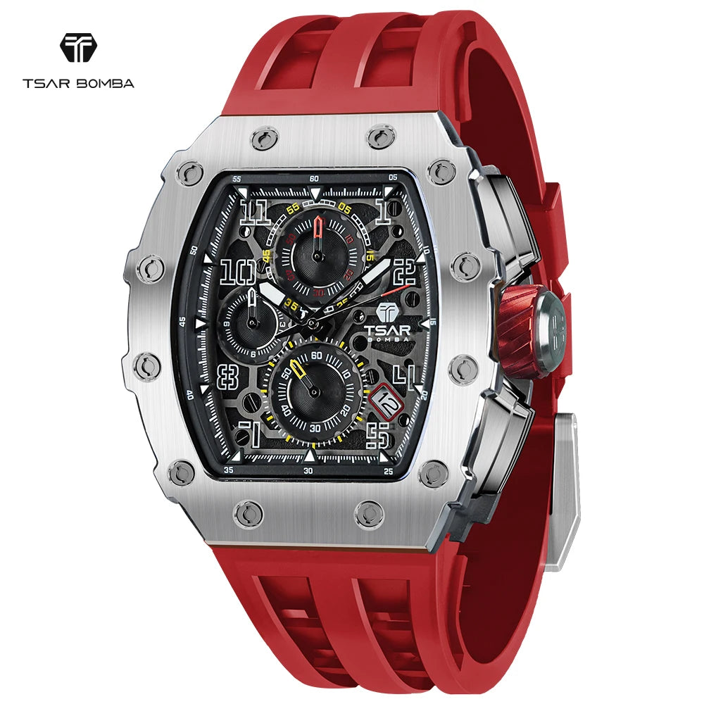 TSAR BOMBA Luxury Watch Men Top Brand Luminous Hand Imported Silicone Strap