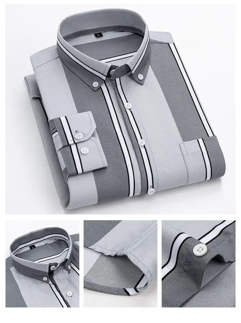 Y2k Spring and Autumn Men's Striped Shirt Long Sleeve Business Casual Square Collar